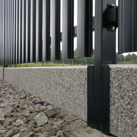 Podmurówki kaseton – podmurówka obustronnie wybierana łączenie na słupku za pomocą łącznika w kształcie H lub ceownika metalowego, podmurówka płukana.
